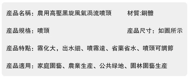 2分鐘前農用高壓黑旋風氣渦流噴頭 - 【活動特惠】3件入 NT$999 均價$333